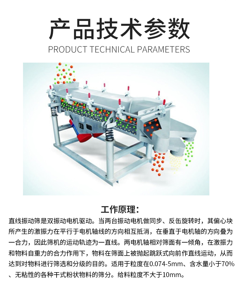 【物料要求】:顆粒度物料,如食品,化工,建筑類物料原料 【產(chǎn)品簡述】:多層直線振動篩是以雙震動電機為激震源,物料分為多種規(guī)格粒度,一次進料,多層分級,解決客戶程序多的問題。多層直線振篩機可以...